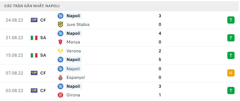 Phong độ gần đây Napoli