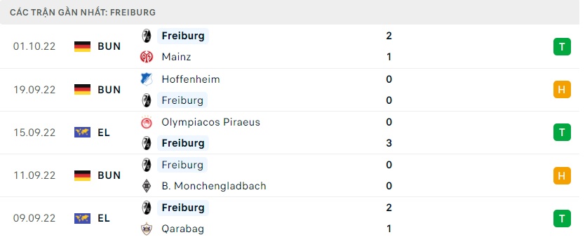 Phong độ gần đây Freiburg