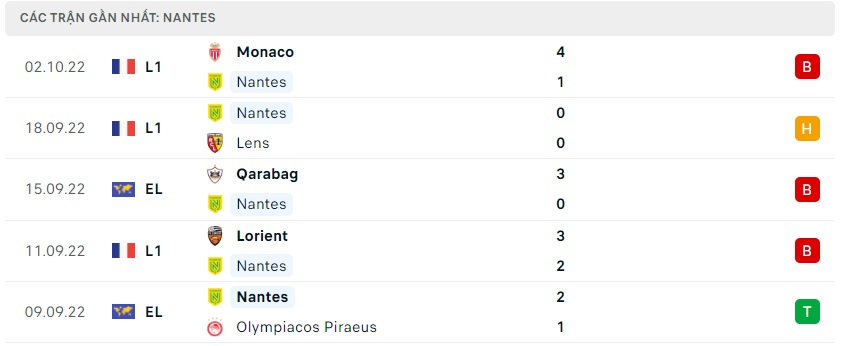 Phong độ gần đây Nantes
