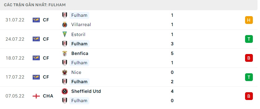 Phong độ gần đây Fulham