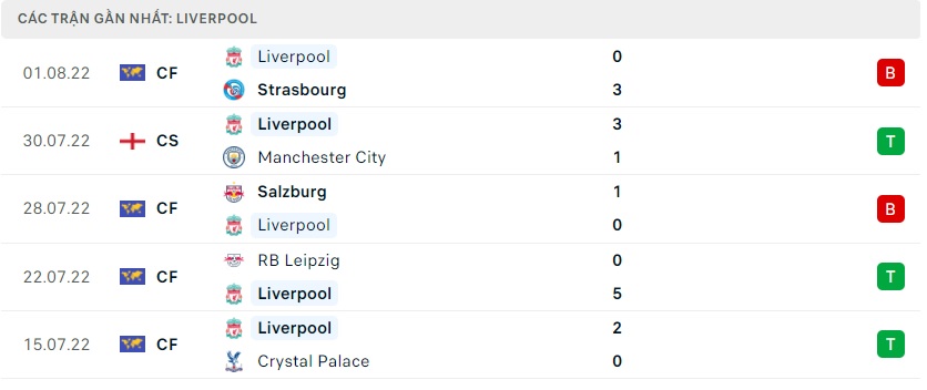 Phong độ gần đây Liverpool