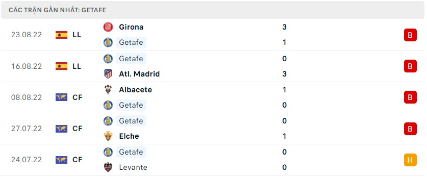 Phong độ gần đây Getafe