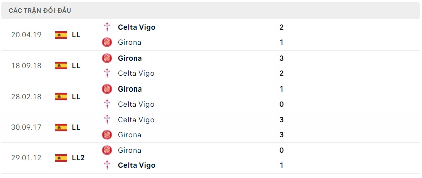 Thành tích đối đầu Girona vs Celta Vigo