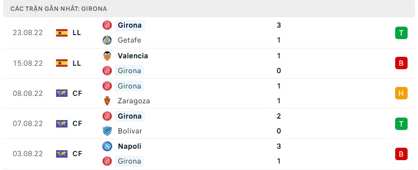Phong độ gần đây Girona