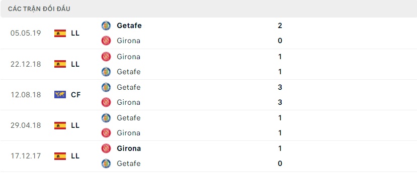 Thành tích đối đầu Girona vs Getafe