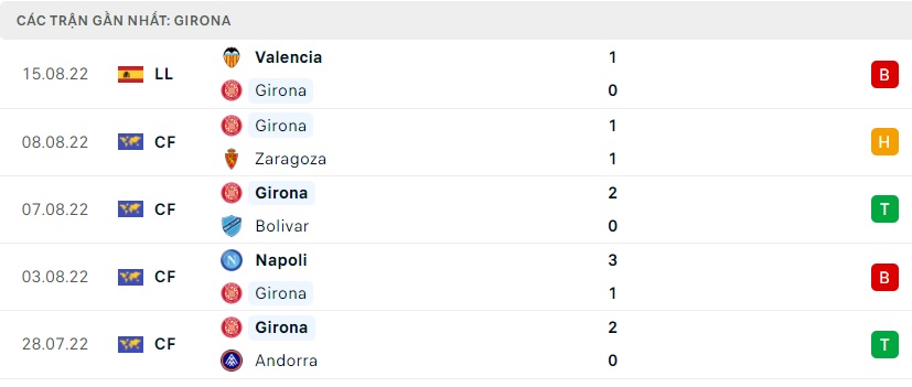 Phong độ gần đây Girona