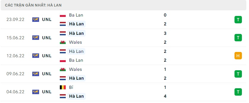 Phong độ gần đây Hà Lan