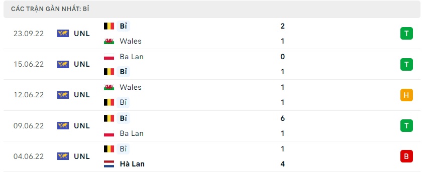 Phong độ gần đây Bỉ