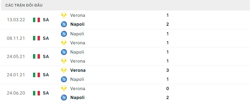 Thành tích đối đầu Hellas Verona vs Napoli