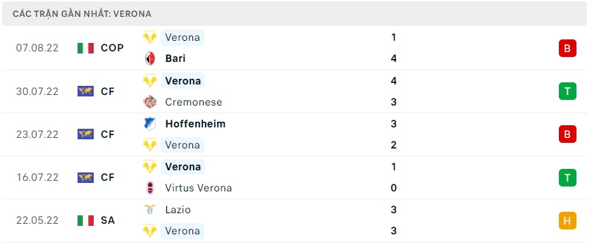 Phong độ gần đây Hellas Verona