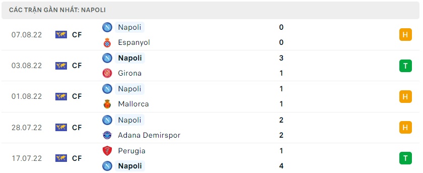 Phong độ gần đây Napoli
