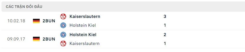 Thành tích đối đầu Holstein Kiel vs Kaiserslautern