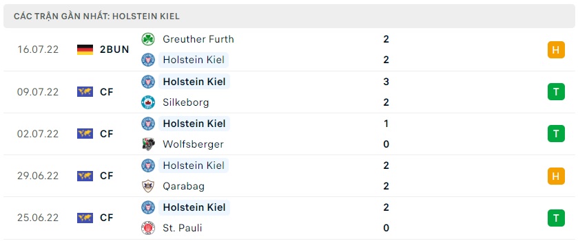 Phong độ gần đây Holstein Kiel