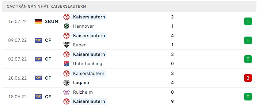 Phong độ gần đây Kaiserslautern