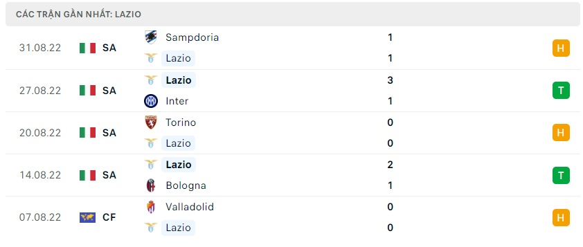 Phong độ gần đây Lazio