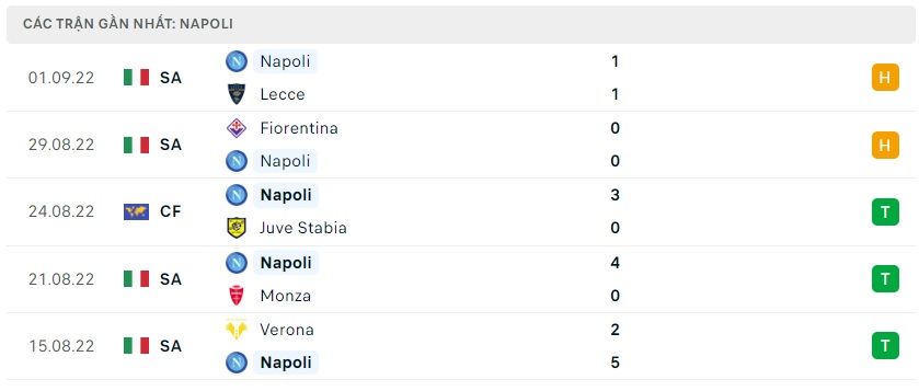 Phong độ gần đây Napoli