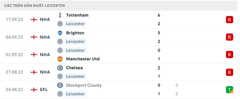 Một thất bại trước Tottenham của Leicester City ở vòng đấu vừa qua là điều được dự bào bởi phong độ rất tệ của họ ở đầu mùa giải năm nay, tuy nhiên đội chủ sân King Power lại cho thấy một phong độ đáng thất vọng hơn nhiều với trận thua thảm 2-6 trước đối thủ, trước đó Leicester City cũng đã thất bại 2-5 trước Brighton đang cho thấy một bộ mặt rất nhiều sa sút của họ.