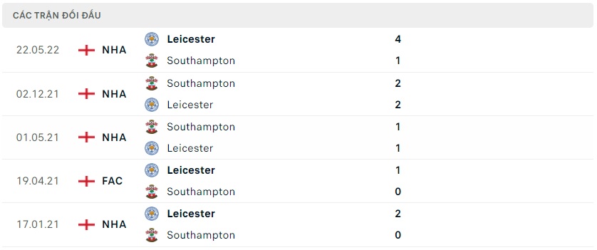 Quá khứ đang đứng về phía Leicester trong những năm gần đây trước Southampton, cụ thể là 10 lần gặp nhau họ thắng 5 trận đấu theo tỷ lệ kèo châu Âu cả trận và mới chỉ 2 lần để thua. Còn với Southampton thì sân khách đang là yếu điểm chết người của họ, tính ở mọi đấu trường 10 trận sân khách gần nhất Southampton không thể thắng và có tới 6 lần nhận thất bại theo kèo châu Âu.