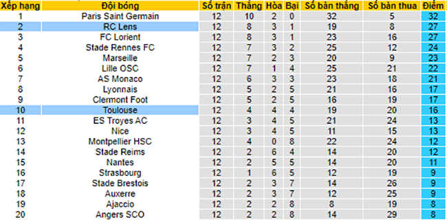 Dự đoán tỷ số Lens 3-1 Toulouse Phong độ và thống kê đối đầu gần đây: