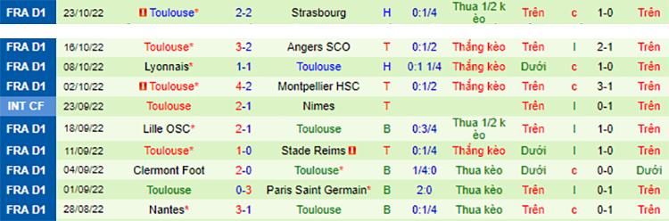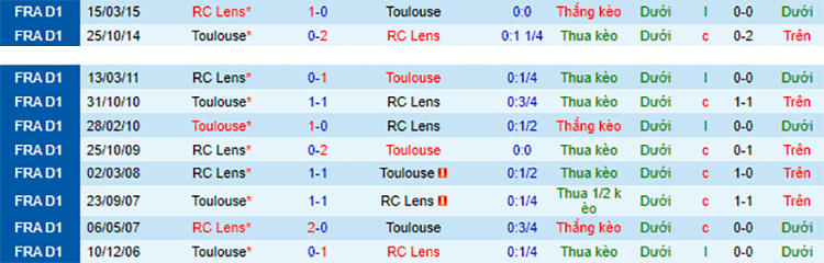 Dù họ đã thi đấu tiến bộ như vậy nhưng trên sàn giao dịch lúc này đội tuyển Toulouse vẫn đang bị xếp ở cửa dưới với kèo được chấp ở mức sâu +1. Thực tế ban đầu thì kèo chính chỉ được ấn định với mức là 0:3/4 nhưng sát giờ bóng lăn thì nhà cái đã phải đẩy tỷ lệ kèo chấp của đội chủ nhà lên thêm 1/4 trái. Rõ ràng với việc nhà cái đã tăng kèo chấp của đội tuyển Lens cho thấy đội chủ nhà đang chiếm trọn được niềm tin từ giới cầm cân nẩy mực.