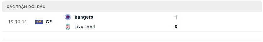 Thành tích đối đầu Liverpool vs Rangers FC