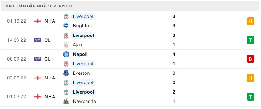 Phong độ gần đây Liverpool