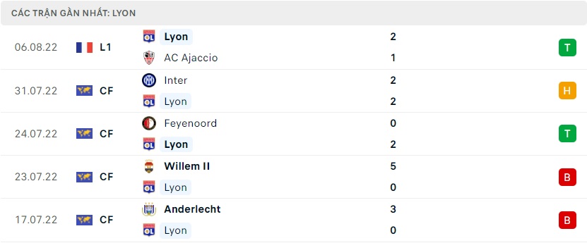 Phong độ gần đây Lyon