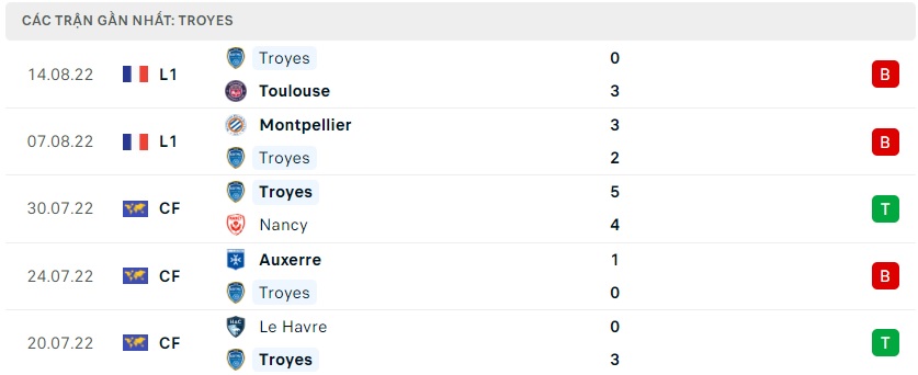 Phong độ gần đây Troyes