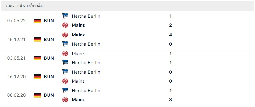 Trong quá khứ thì vấp phải Mainz 05 cũng không để lại nhiều kỷ niệm đẹp, tính từ 2021 thì cặp đấu này trực tiếp đọ sức 3 lần ở sân chơi VĐQG và Hertha Berlin thể hiện sự yếu đuối của mình bằng 3 thất bại. Trong bối cảnh HLV Bo Svensson sẽ dốc toàn lực tìm kiếm một chiến thắng để cũng cố vị thế trong nhóm dẫn đầu thì khả năng Hertha Berlin nhận thất bại trong lần làm khách này là rất cao.
