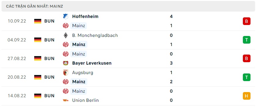 Phong độ gần đây Mainz 05