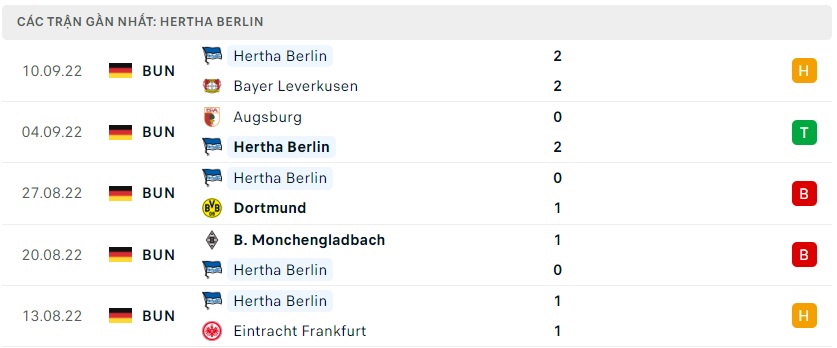 Phong độ gần đây Hertha Berlin