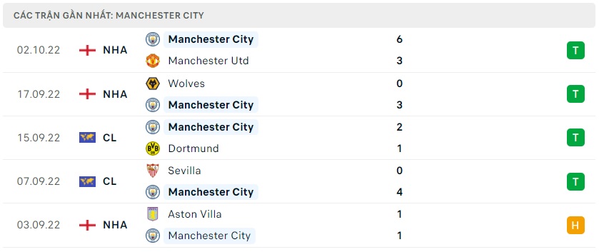 Không quá khó khăn với Manchester City khi 2 lượt trận vừa qua những đối thủ của họ là Sevilla cùng với Borussia Dortmund, chính vì vậy mà 2 trận thắng liên tiếp trước các đối thủ này giúp thầy trò HLV Pep Guardiola xây dựng vững chắc vị trí dẫn đầu bảng xếp hạng của mình. Mới đây nhất Manchester City cũng tiếp tục thị uy sức mạnh sân nhà của mình với việc đánh bại Manchester United ở trận derby thành Manchester.