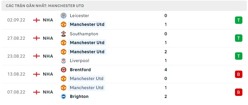Phong độ gần đây Manchester United