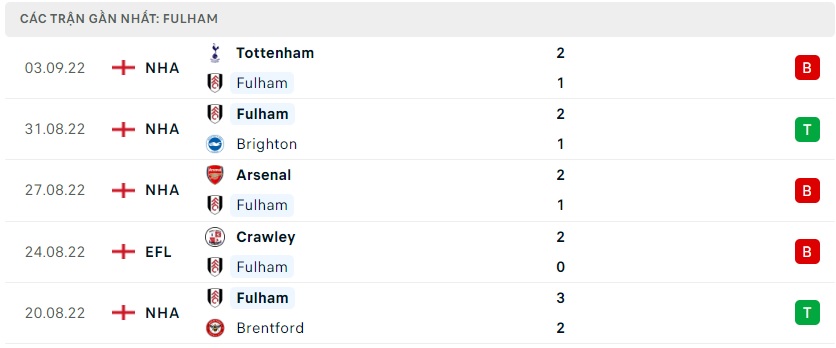 Trái lại với Nottingham thì Fulham có được những thành tích không tệ ở mùa giải năm nay, mặc dù để thua 2 trong 3 vòng đấu gần đây nhất nhưng có thể thấy được thất bại họ nhận trước Arsenal cùng với Tottenham cũng không phải là điều quá đáng trách. Fulham hiện tại đang có được vị trí thứ 10 trên bảng xếp hạng khi đã thu về được 8 điểm sau 6 lượt trận đã qua của mình.