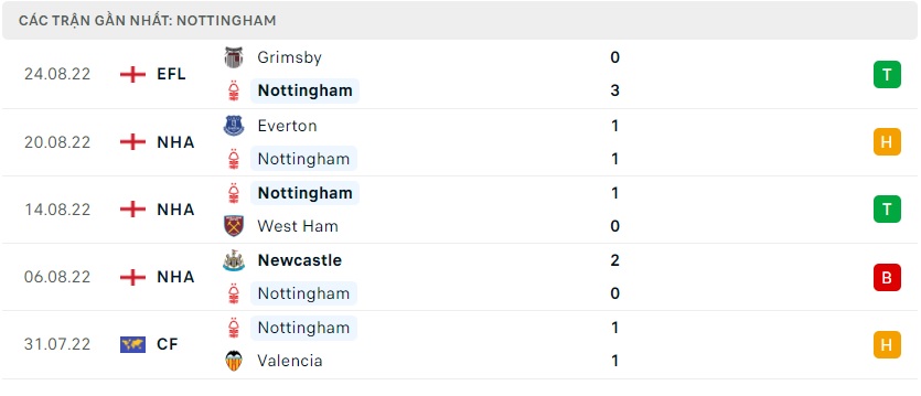 Phong độ gần đây Nottingham