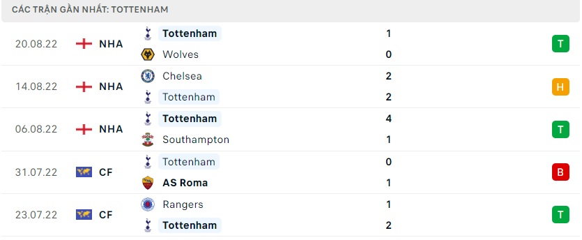 Phong độ gần đây Tottenham