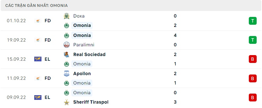 Phong độ gần đây Omonia Nicosia