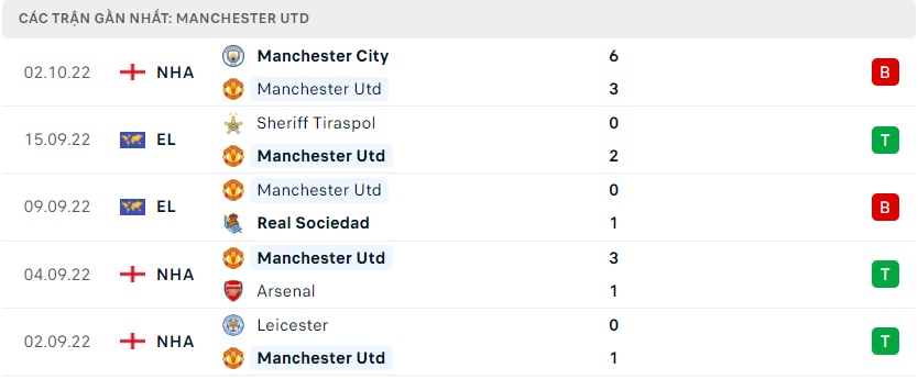 Phong độ gần đây Manchester United