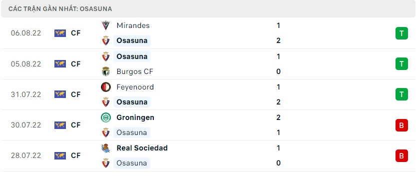 Phong độ gần đây Osasuna