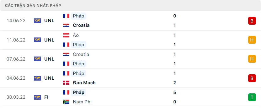 Phong độ gần đây Pháp