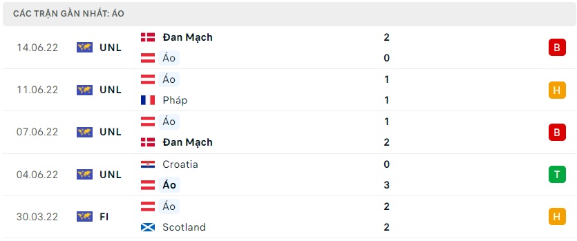 Phong độ gần đây Áo