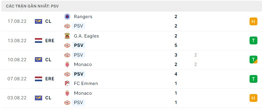 Phong độ gần đây PSV Eindhoven