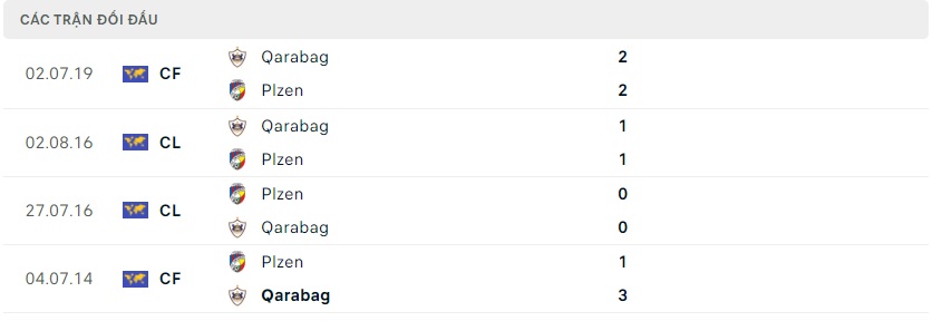 Thành tích đối đầu Qarabag vs Viktoria Plzen