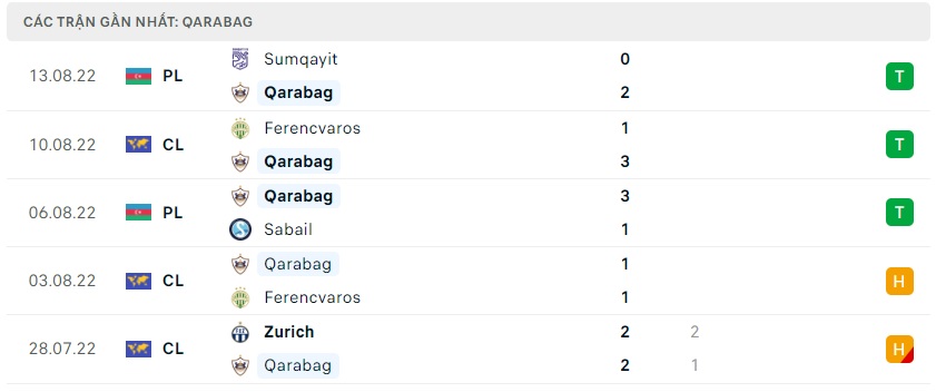 Phong độ gần đây Qarabag