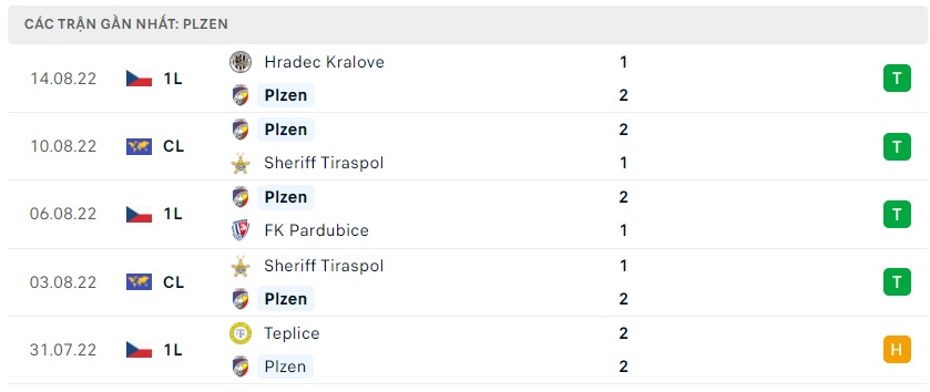 Phong độ gần đây Viktoria Plzen
