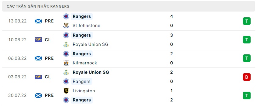 Phong độ gần đây Rangers