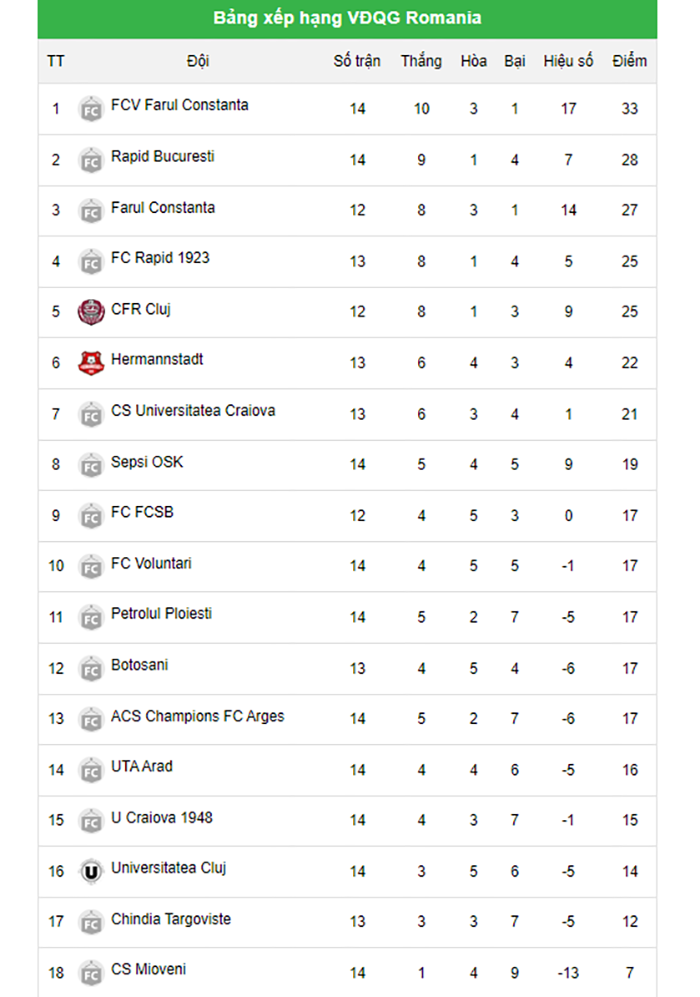 Cuộc đối đầu giữa tâm điểm tại vòng đấu 15 của giải bóng đá VĐQG Romania sẽ là trận đối đầu giữa Rapid Bucuresti vs Farul Constanta. Cả hai đôi bóng đang cạnh tranh quyết liệt cho ngôi vị đầu bảng, Lợi thế của Rapid Bucuresti sẽ được chơi trên sân nhà và nhiệm vụ bắt buộc họ là phải thu hẹp khoảng cách 5 điểm với đối thủ của mình.