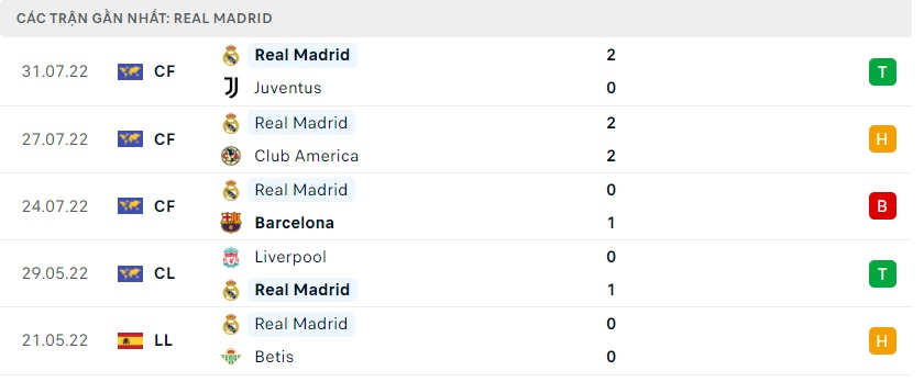 Phong độ gần đây Real Madrid