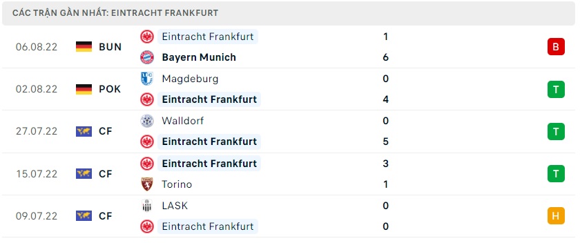 Phong độ gần đây Eintracht Frankfurt