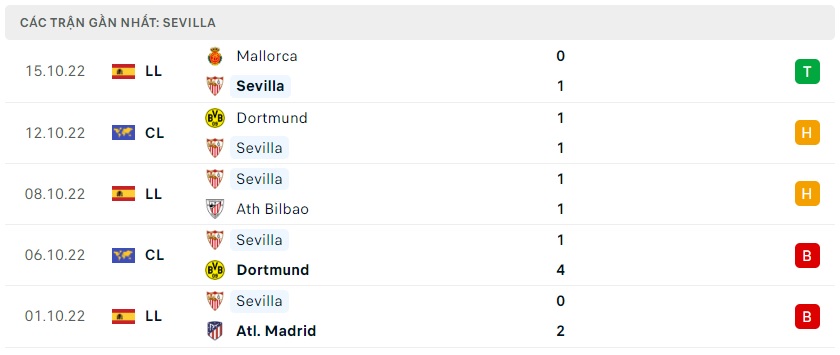 Phong độ gần đây Sevilla